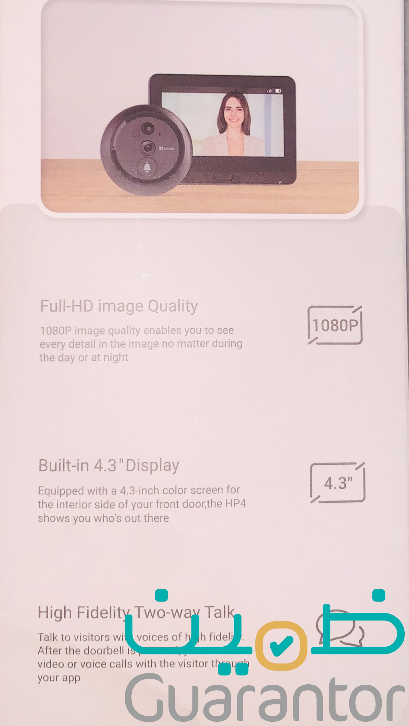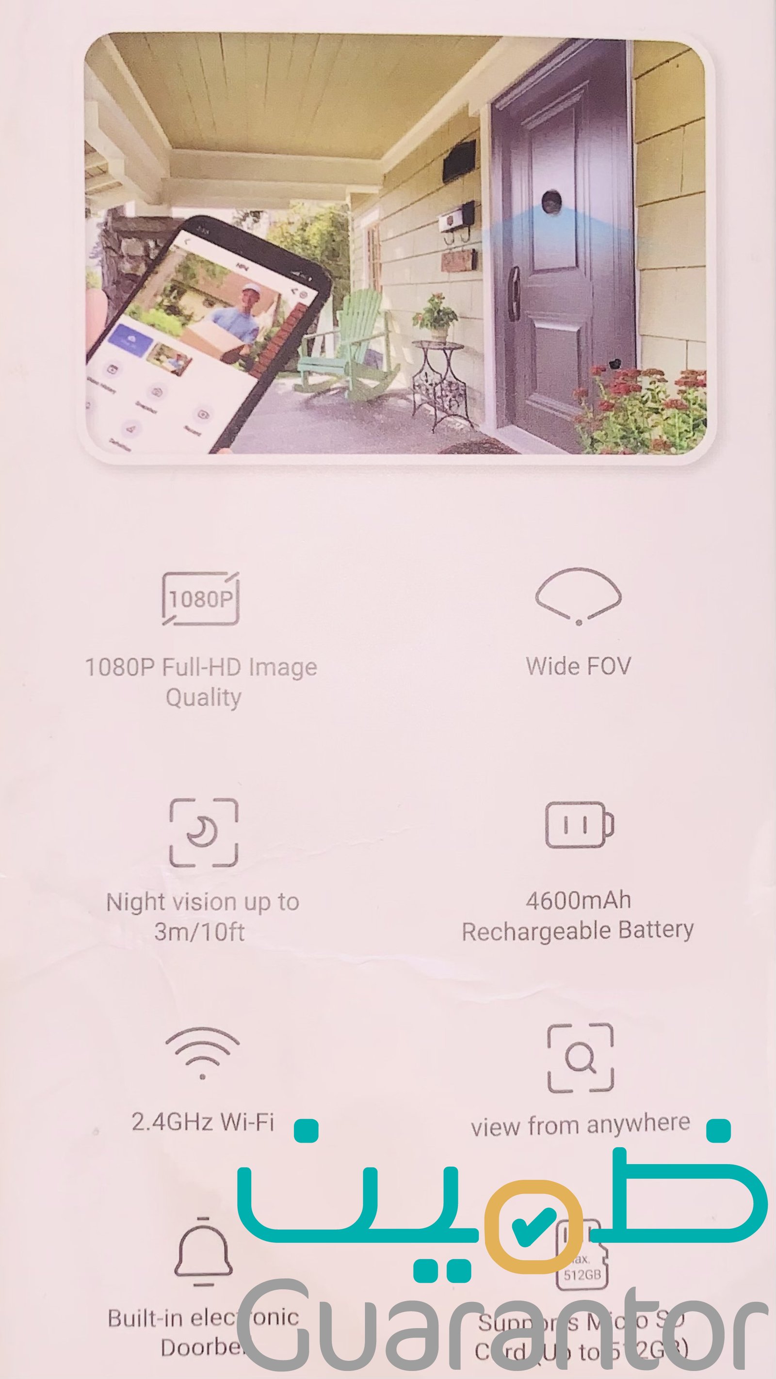 كاميرا للباب عين سحرية لم يتم استخدامها ولا تركيبها ، ، شريتها من فترة بسعر 384 ﷼ ، سبب البيع الجيران رفضو علي تركيبها لعدم انتهاك الخصوصية لوجود كاميرا بها. الوصف : جرس باب لاسلكي EZVIZ مزود بعدسة 2.0 مم (طراز CS-HP 4). الميزات الرئيسية: مستشعر CMOS بمسح تقدمي 1/3 بوصة، دقة 2 ميجابكسل (1080 بكسل)، مجال رؤية قطري 155 درجة، فتحة عدسة f/2.2، مرشح الأشعة تحت الحمراء ICR للنهار/الليل، إضاءة الأشعة تحت الحمراء حتى 3 أمتار، فيديو 15 إطارًا في الثانية. يدعم الاتصال الداخلي عبر الفيديو المحلي والبعيد، وتشفير الفيديو والصورة السحابي. التخزين عبر بطاقة microSD (حتى 512 جيجابايت). ميكروفون مدمج عالي الحساسية ومكبر صوت مدمج عالي الطاقة. يتضمن جرس باب ثقب الباب، لوحة، قاعدة تثبيت، كابل طاقة 1 متر، 6 براغي ملاحظة الضمان / سنتين من الوكيل